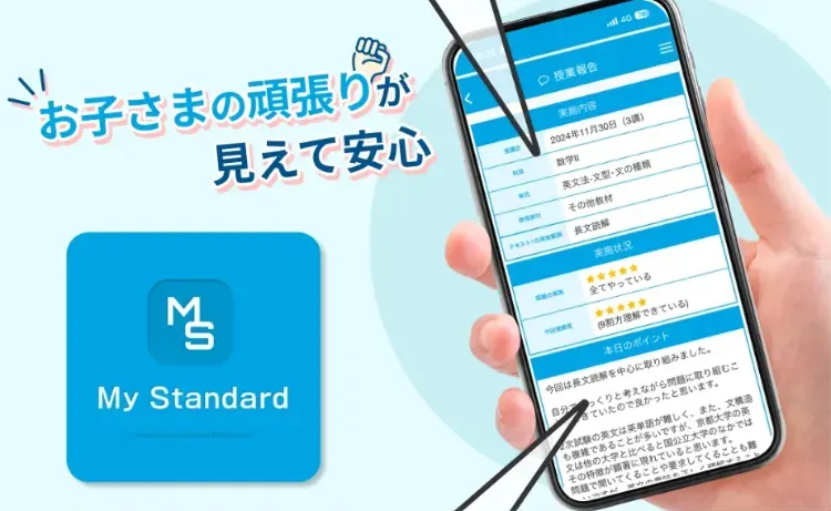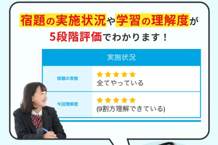 ご家庭と塾を密接につなげる専用のアプリがあります。授業の進捗や宿題の内容など、 大切な情報を保護者の方へ随時お知らせいたします。